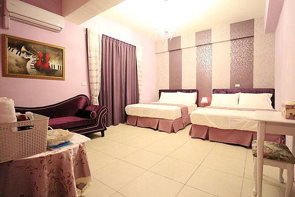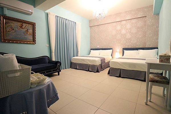 黛安娜四人房:提供人數多的四人房,設計一樣採用簡約典雅的風格,令人沒有負擔,牆上的壁燈柔和高雅,提供包棟可達18人。